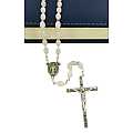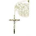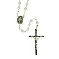 Rosario imitazione madreperla ovale mm. 4 con con legatura in ottone argentato - bianco