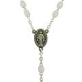 Rosario imitazione madreperla ovale mm 4 legatura ottone argentato - bianco