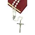 Rosario imitazione madreperla tondo diametro 7 mm bianco con legatura a mano in ottone argentato