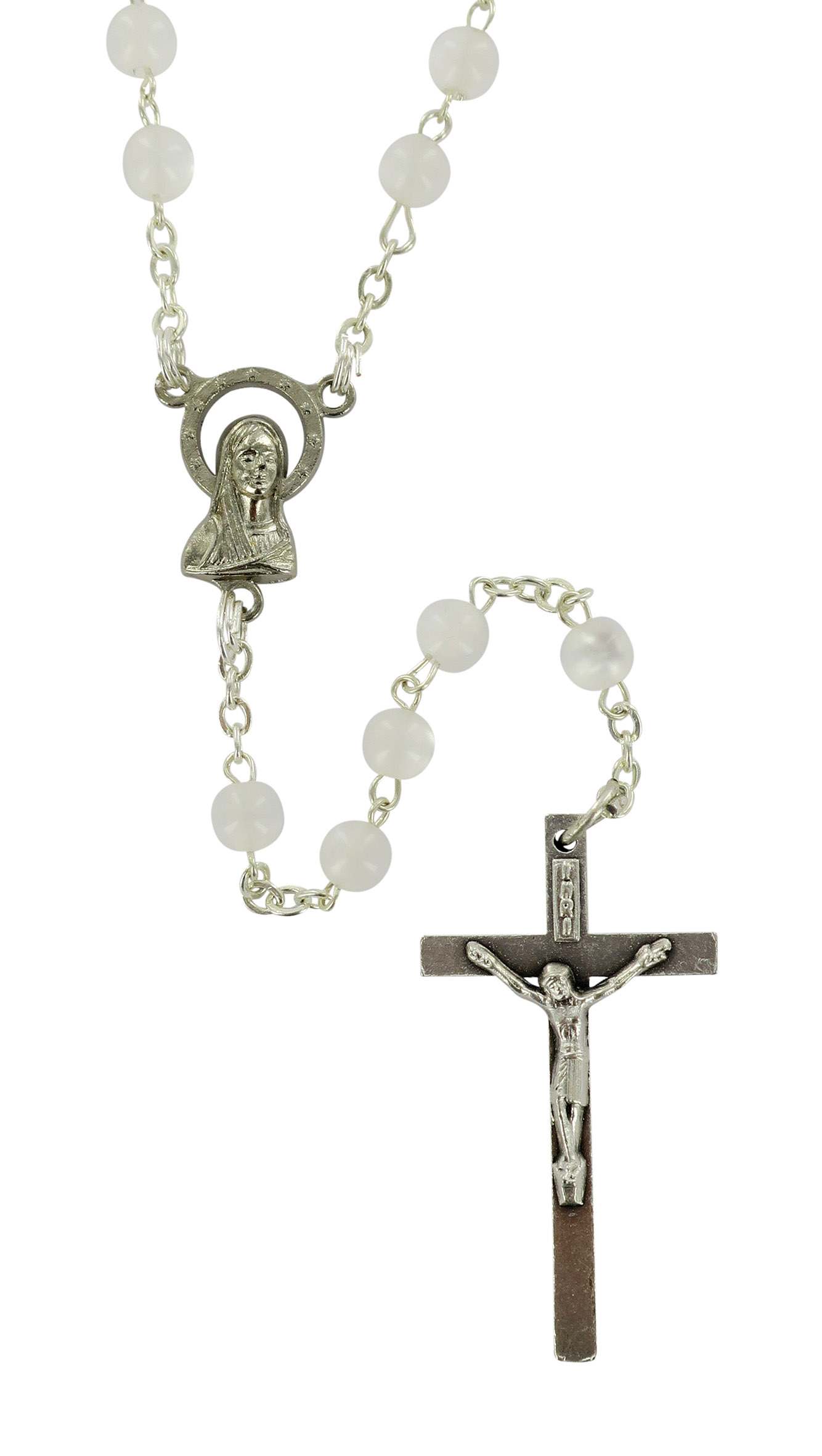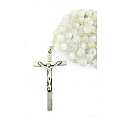 Rosario imitazione madreperla tondo mm. 4 con legatura in ottone argentato - bianco