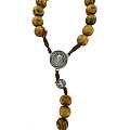 Rosario di San Benedetto in Legno d'Ulivo per Preghiera, Rosario Cattolico Resistente con Legatura Fatta a Mano, Medaglia S. Benedetto e Grano Tondo in Legno Ulivo Diametro 10mm