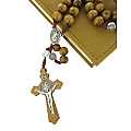 Il rosario, dalla legatura effettuata a mano con filo lucido marrone, è realizzato con il grano tondo di legno ulivo del diametro di 10mm. Tra una decina e l'altra il pater è in metallo ossidato raffigurante l'immagine di San Benedetto, così pure la crociera. La croce in legno ha il Cristo applicato in metallo ossidato. Meraviglioso rosario cattolico di Gerusalemme, di San Benedetto, con belle perline in legno di ulivo con piccole separazioni di medagliette di metallo di San Benedetto, e al crocifisso in legno che pende da una sola fila di perline. Dimensioni: Altezza e larghezza della croce: 6 cm x 3,5 cm. Rosario cattolico in legno d'ulivo con perline. Rosario in legno d'ulivo INRI, San Benedetto, rosario per preghiera, lunghezza con croce inclusa: 45 cm.