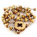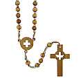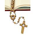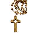 Rosario in legno d'ulivo, rosario cattolico con medaglia e croce in ulivo traforata con Spirito Santo