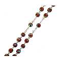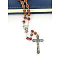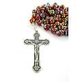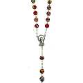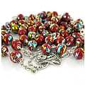 Il rosario legato a mano con metallo argentato, ha grani del diametro mm 7 di color rosso screziato con macchie colorate. Croce con Cristo riportato, crociera con il Volto di Maria.La croce con Cristo misura cm 5 la crociera con Volto di Maria misura cm 2La lunghezza del rosario è di cm 51,5 e la circonferenza è di cm 70.Peso:39 gr.Materiale: vetroTutto completamente made in Italy.