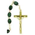 Rosario con legatura dorata fatta a mano con grani ovali in vetro di colore verde, simil malachite. Sulla Crociera è visibile l'immagine della Madonna Miracolosa. Il prodotto è completamente realizzato in Italia. Il Santo Rosario è stato l'oggetto delle più vigile attenzione e premurosa sollecitudine da parte di tutti i Pontefici, che hanno visto il Rosario come una preghiera contemplativa che è insieme di lode e di supplica, efficace nel promuovere la vita cristiana e l'impegno apostolico. Anche Paolo VI e Giovanni Paolo II più volte hanno rivolto ai cristiani un appello perchè fossero innalzate supplici preghiere alla Beata Vergine del Rosario, per implorare da Dio il bene supremo della pace e il risveglio della vita cristiana.