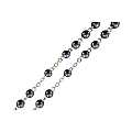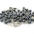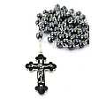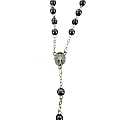 Rosario perlina colore ematite con croce smaltata del colore del grano. La piccola crociera rappresenta la Madonna Miracolosa.Sono venduti in confezione da 12 pezzi e si presentano ciascuno in scatolina con coperchio trasparente.Misura totale compresa di croce circa cm 40 il grano misura 5 mmTutto made in Italy.