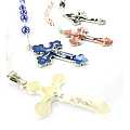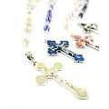 Rosario perlina colori assortiti, rosa, blu, verde acqua, bianco, nero con croce smaltata del colore del grano. La piccola crociera rappresenta la Madonna Miracolosa. Misura totale compresa di croce circa cm 40 il grano misura 5 mm. Tutto made in Italy.