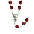 Il rosario si presenta con i grani mm 8 a forma di coccinella, è in vetro lucido e legato a mano con filo in metallo argentato, croce con Cristo riportato e crociera con il Volto di Maria.La croce con Cristo misura cm 4,5 la crociera con Volto di Maria misura cm 2La lunghezza del rosario è di cm 58 e la circonferenza è di cm 80.Peso: 38 gr.Materiale: vetroTutto completamente made in Italy.