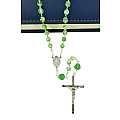 Rosario vetro tondo mm 6 con pater conghiglia e legatura in ottone argentato - verde