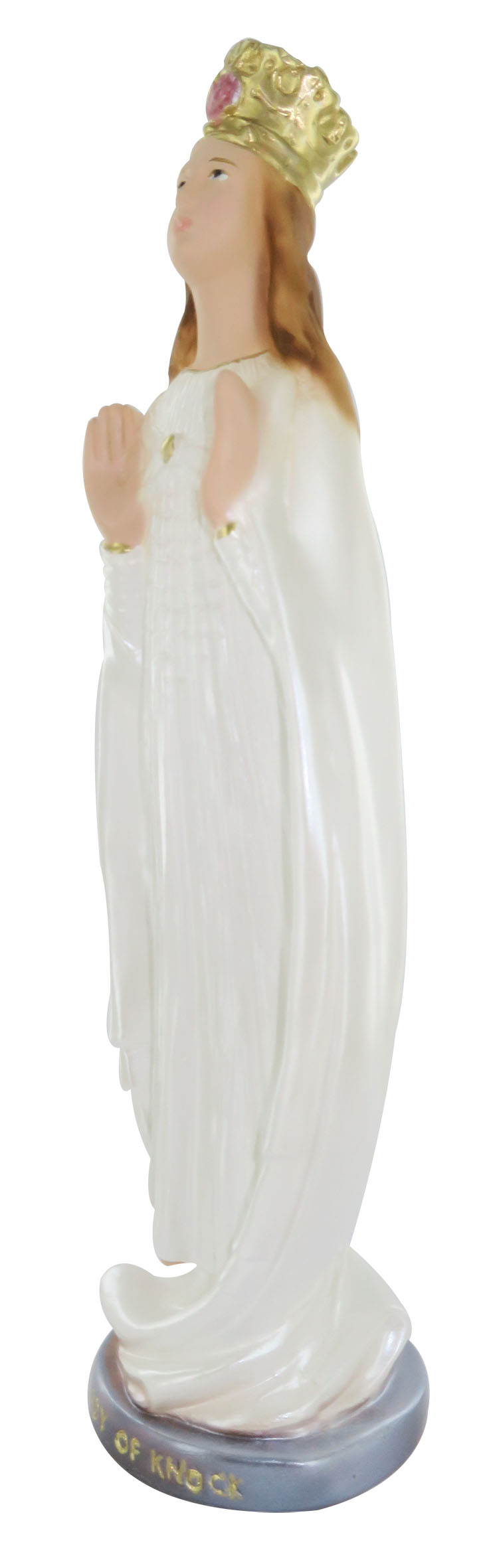 Ferrari & Arrighetti Statua Madonna di Knock Dipinta a Mano, Statua Religiosa Classica di Nostra Signora di Knock, Statua Religiosa per Nicchia / Vetrinetta / Chiesa, Gesso Madreperlato, 30 Cm