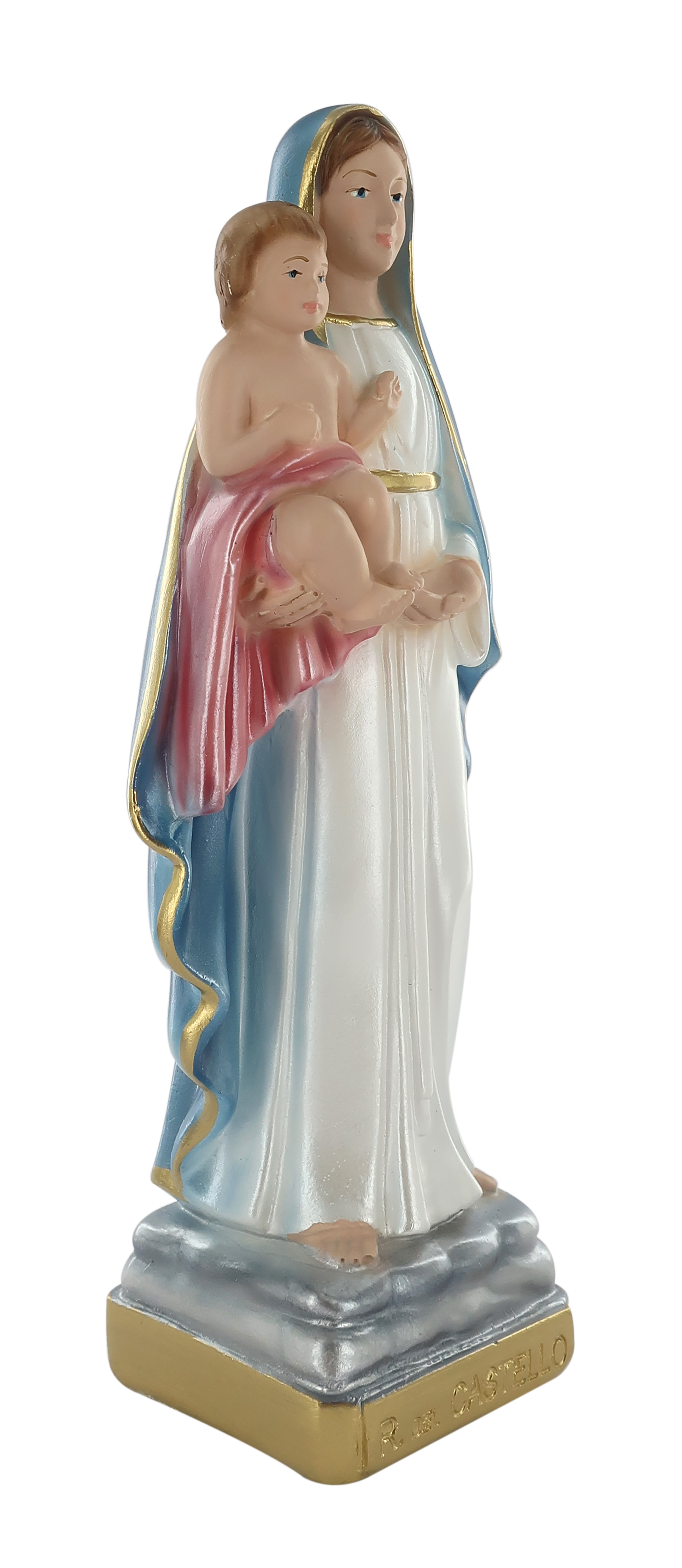 Ferrari & Arrighetti Statua Regina del Castello Dipinta a Mano, Statua Religiosa Madonna di Oliveto Citra, Statua per Nicchia o Vetrinetta, Gesso Madreperlato, 20 Cm