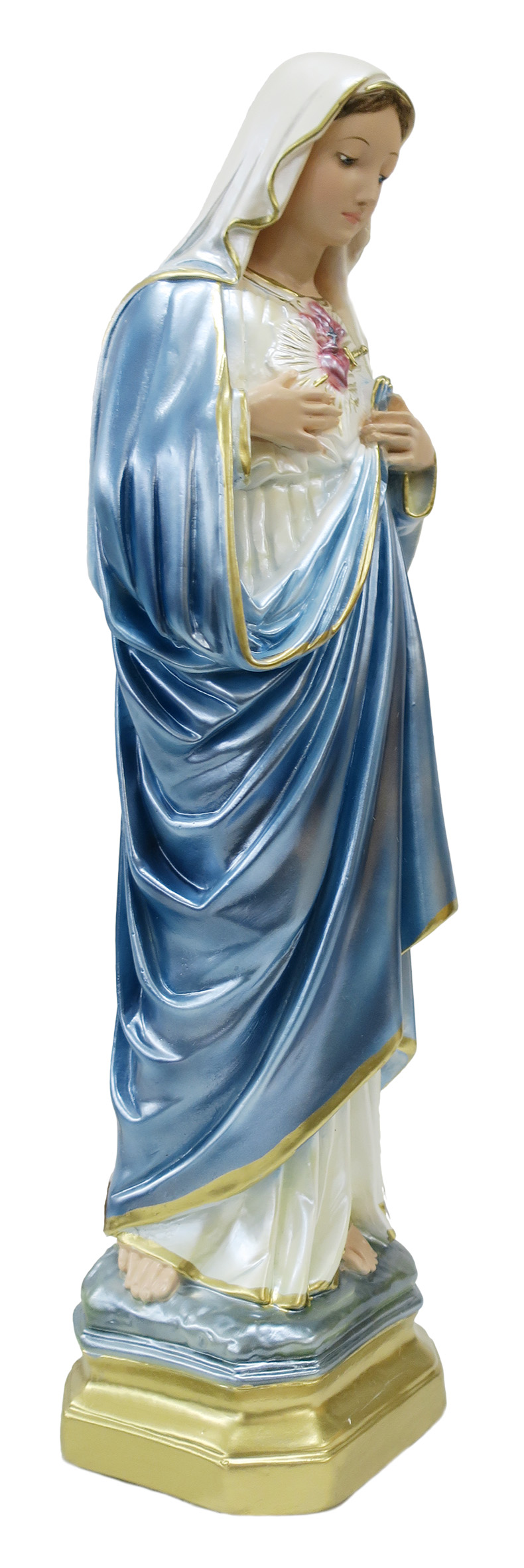 Statua Sacro Cuore di Maria in gesso madreperlato dipinta a mano - 50 cm