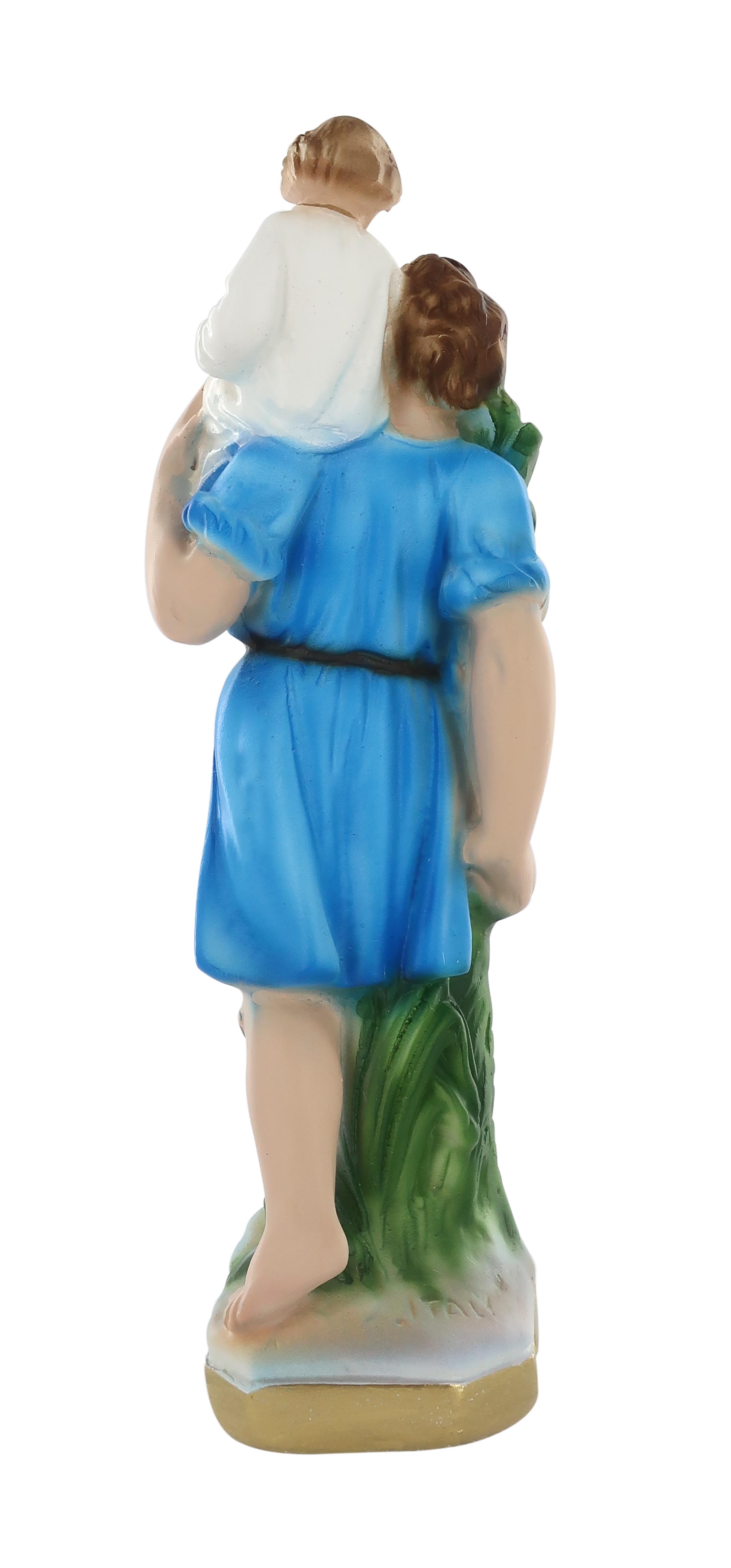 Ferrari & Arrighetti Statua San Cristoforo Dipinta a Mano, Statua Religiosa Classica di San Cristoforo, Statua Religiosa per Nicchia / Vetrinetta / Chiesa, Gesso, 20 Cm