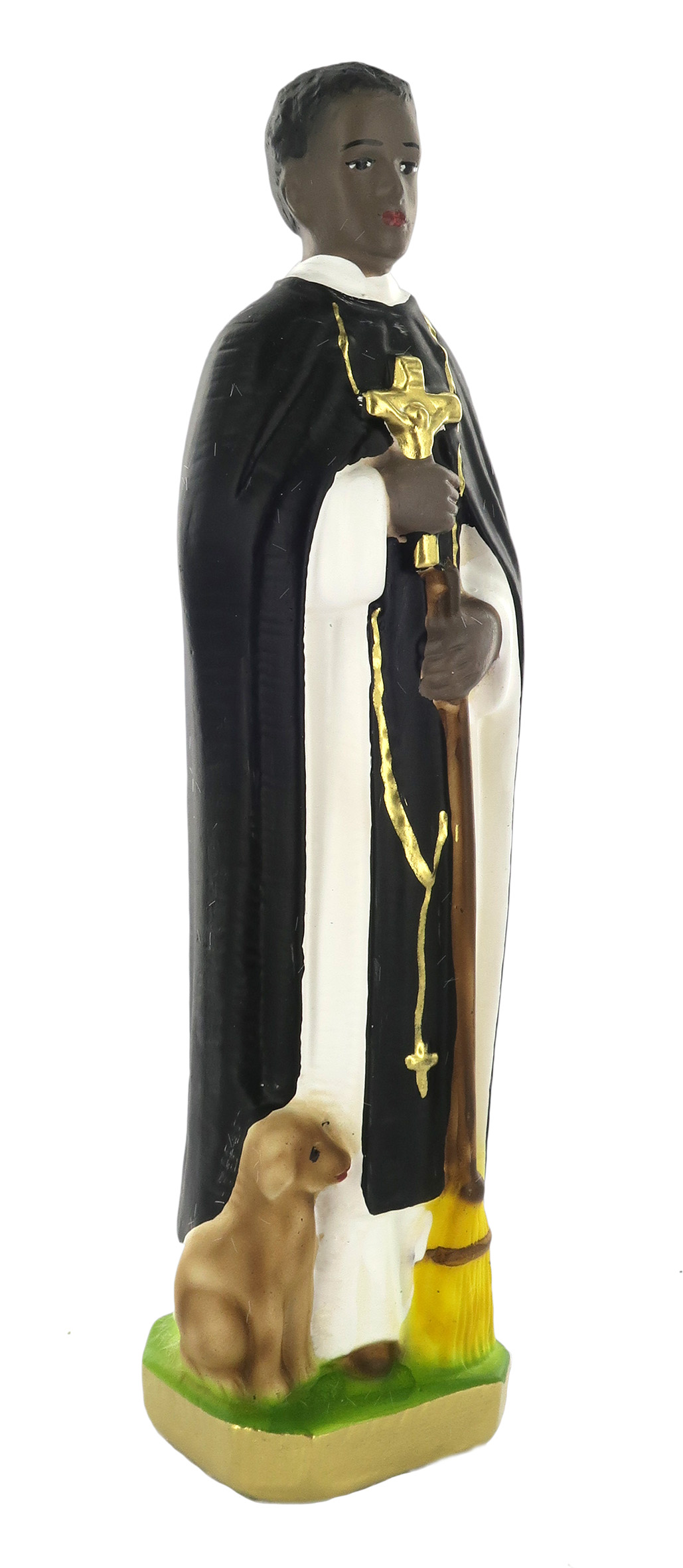 Ferrari & Arrighetti Statua San Martino de Porres Dipinta a Mano, Statua Religiosa Classica di S. Martino de Porres, Statua Religiosa per Nicchia / Vetrinetta / Chiesa, Gesso, 20 Cm