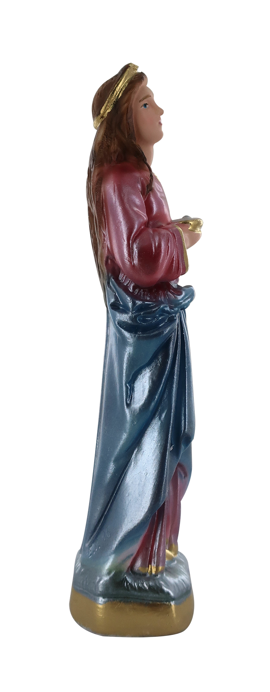 Ferrari & Arrighetti Statua Santa Lucia Dipinta a Mano, Statua Religiosa Classica di Santa Lucia, Statua Religiosa per Nicchia o Vetrinetta, Gesso Madreperlato, 15 Cm