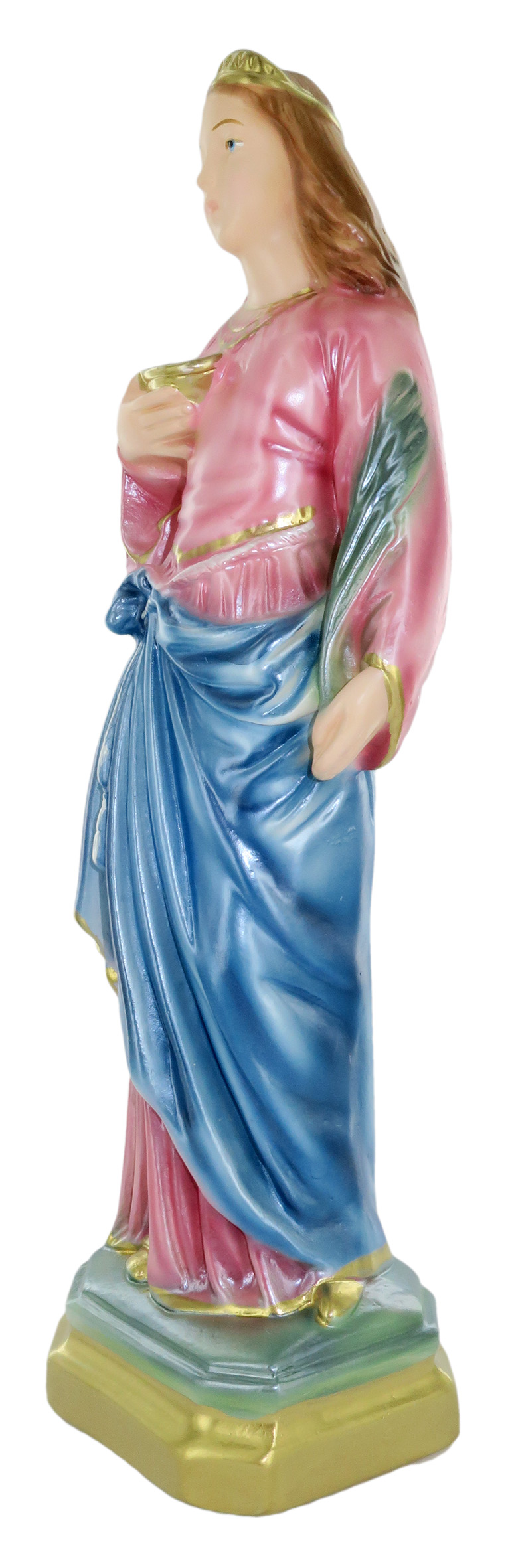 Ferrari & Arrighetti Statua Santa Lucia Dipinta a Mano, Statua Religiosa Classica di Santa Lucia, Statua Religiosa per Nicchia / Vetrinetta / Chiesa, Gesso Madreperlato, 30 Cm
