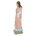 La statua, in gesso finemente dipinto a mano e impreziosito da una rifinitura madreperlata, raffigura Santa Maria Goretti, vergine e martire assassinata all'età di 11 anni. Giurata la verginità e la propria fedeltà alla fede, Maria incontrò la morte per mano di un violentatore che la pugnalò ripetutamente a causa del suo rifiuto. Maria Goretti fu proclamata santa nel 1950. Rappresentata in questa statua con il suo simbolo, la palma, Maria indossa vesti di un delicato color rosa. Questa statua di S. Maria Goretti da 30 cm d'altezza è realizzata artigianalmente in Italia e si distingue per la qualità della fattura e per il sapiente uso dei colori. L'effetto madreperlato rende le tinte molto lucenti e arricchisce la figura di suggestivi riflessi, donandole un aspetto elegante e raffinato. Da esporre in piccole nicchie di luoghi di culto, la statua di Santa Maria Goretti è ideale da esporre in vetrinette di casa o come soprammobile. Sarà, inoltre, una gradita idea regalo per i devoti a questo personaggio, santa patrona delle vittime di crimini e violenze. La luce delle fiammelle dei lumini o dei faretti esalterà l'effetto iridescente della sua rifinitura madreperlacea, rendendo la figura ancora più bella. A causa della pittura a mano, la colorazione potrebbe variare: idealmente, ogni statua è un pezzo unico. Peso: 706 gr.
