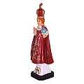La statua, in materiale infrangibile tipo gomma, raffigura Gesù Bambino di Praga ed è dipinta a mano. Grazie al materiale di cui è fatta e alla resistenza che la caratterizza, è adatta all'uso esterno (giardini, nicchie all'aperto, ecc.). Può essere esposta anche alla pioggia. Il Gesù Bambino di Praga, a cui questa riproduzione si ispira, era inizialmente di proprietà degli ambasciatori della monarchia spagnola a Praga, che fu poi regalata ai Carmelitani Scalzi della medesima città. La raffigurazione, già molto popolare in Spagna, impiegò poco a diffondersi prima tra i novizi e poi in altre parti del mondo. Le vennero attribuiti poteri miracolosi ed è un simbolo della venerazione dell’infanzia di Gesù. Il Bambino viene rappresentato su un piedistallo, con vesti ecclesiastiche molto sfarzose e pregiate, nei colori del bianco e del rosso, riccamente decorate di color oro. È in posizione benedicente, con una grande corona sulla testa e il globo crucigero in mano. Questa statua del Gesù Bambino di Praga da circa 16 cm è realizzata artigianalmente in Italia e si distingue per la durevolezza della fattura e per i suoi colori coprenti. Peso: 103 gr. Dimensioni: 7,5 cm (L), 15 cm (A), 4,2 cm (P).