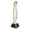 Statua della Madonna di Lourdes realizzata in plastica fosforescente. La statua misura 10 cm ed è incollata su piedistallo di 1,5 cm. La aureola è removibile.