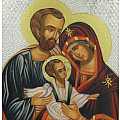 Biglietto natalizio con icona S.Famiglia e decori oro e argento