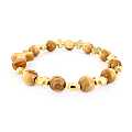 Braccialetto elastico grani in legno colore grezzo e croci in metallo