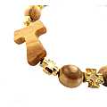 Braccialetto elastico grani in legno color grezzo e croci in metallo