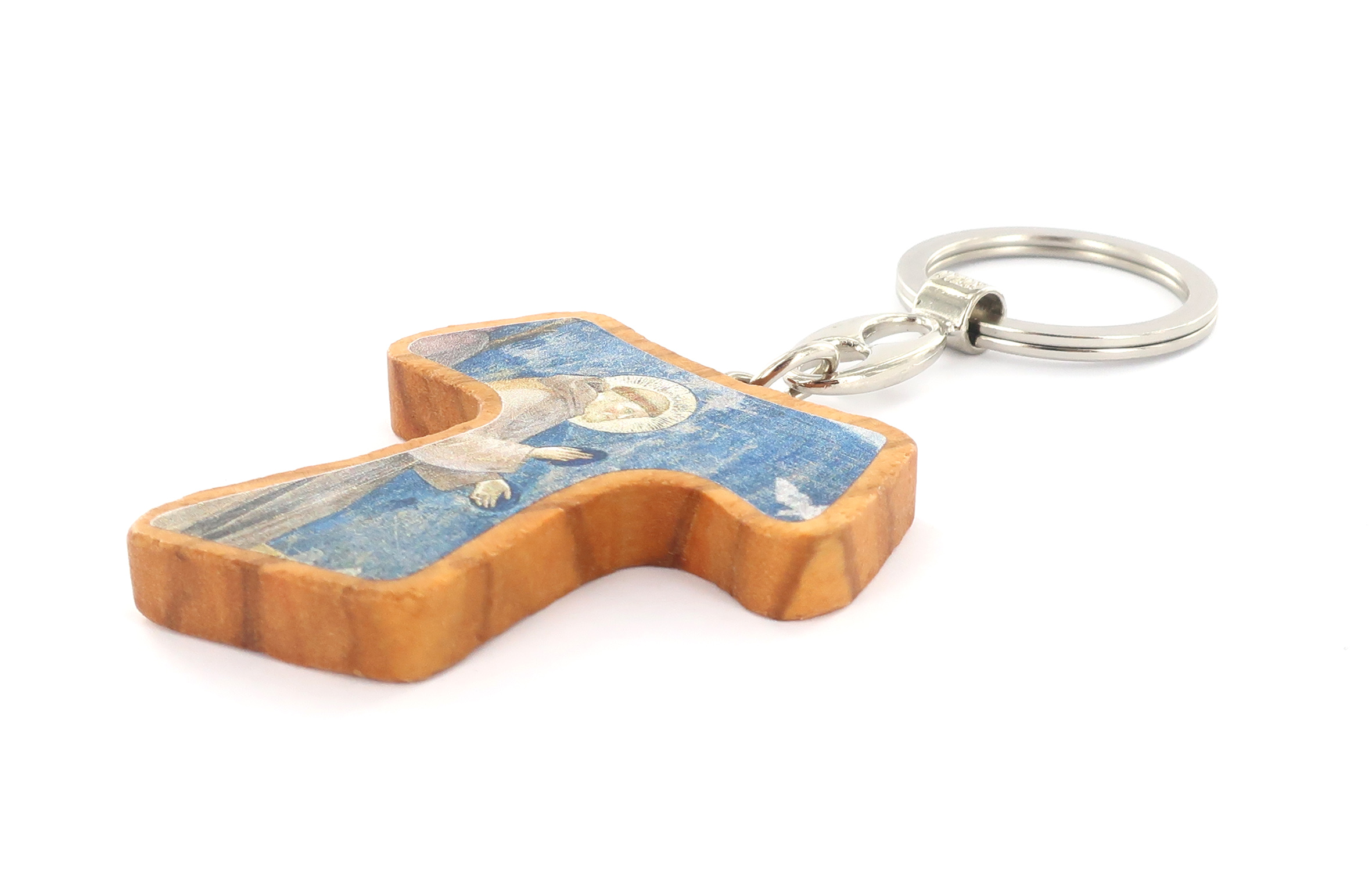 Portachiavi tau San Francesco in ulivo immagine serigrafata