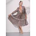 Caftano lungo in voile di cotone, fantasia “Kon Tiki”; maniche con allacciatura a fiocco; giochi di frange, passamanerie, fiore crochet fatto a mano e pom-pom sullo scollo; nastro decorativo tra le balze. Taglia: I / S-M / IT 40-42 / US 6-8 / UK 8-10. Composizione: 100% CO (Cotone). Nato con l'intento di rompere gli schemi stilistici in fatto di beachwear, vantando uno stile non convenzionale volto a esaltare una femminilità audace e scanzonata, il brand "Amorissimo" vuole portare colore e ironia nel mondo dei costumi da donna. La scelta di tessuti e di accessori di pregio sono parte del DNA del brand. Ogni costume Amorissimo è "100% Hand-Made in Italy with Love".