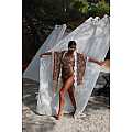 Kimono in voile di cotone, fantasia “Eden”; lunga frangia su maniche e finale abito; lacci di chiusura interni, bordatura con raffinato nastro macramé. Taglia I / S-M / IT 40-42 / US 6-8 / UK 8-10. Composizione: 100% CO (Cotone). Nato con l'intento di rompere gli schemi stilistici in fatto di beachwear, vantando uno stile non convenzionale volto a esaltare una femminilità audace e scanzonata, il brand "Amorissimo" vuole portare colore e ironia nel mondo dei costumi da donna. La scelta di tessuti e di accessori di pregio sono parte del DNA del brand. Ogni costume Amorissimo è "100% Hand-Made in Italy with Love".