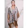 Kimono in raso, fantasia “Jakarta”; lunga frangia su maniche e finale abito; lacci di chiusura interni, bordatura con raffinato nastro macramé floreale. Taglia I / S-M / IT 40-42 / US 6-8 / UK 8-10. Composizione: 100% PL (Poliestere). Nato con l'intento di rompere gli schemi stilistici in fatto di beachwear, vantando uno stile non convenzionale volto a esaltare una femminilità audace e scanzonata, il brand "Amorissimo" vuole portare colore e ironia nel mondo dei costumi da donna. La scelta di tessuti e di accessori di pregio sono parte del DNA del brand. Ogni costume Amorissimo è "100% Hand-Made in Italy with Love".