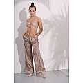 Pantalone Palazzo in raso, fantasia “Kon Tiki”; elastico morbido in vita con coulisse; lacci con nappine colorate sui finali; tasche laterali. Taglia I / S-M / IT 40-42 / US 6-8 / UK 8-10. Composizione: 100% PL (Poliestere).Nato con l'intento di rompere gli schemi stilistici in fatto di beachwear, vantando uno stile non convenzionale volto a esaltare una femminilità audace e scanzonata, il brand "Amorissimo" vuole portare colore e ironia nel mondo dei costumi da donna. La scelta di tessuti e di accessori di pregio sono parte del DNA del brand. Ogni costume Amorissimo è "100% Hand-Made in Italy with Love".