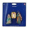 Questo set Natività della serie Martino Landi, adatto a presepi da 9 cm d'altezza, è in PVC colorato ed è formato da 3 pezzi: San Giuseppe, la Vergine Maria e il Gesù Bambino nella culla. Realizzate su modello concepito dal celeberrimo scultore Martino Landi, le statuine ripropongono le caratteristiche tipiche delle creazioni del famoso maestro d’arte sacra, come l’attenzione e la cura dei dettagli. Le statuine vantano colori brillanti e molto carichi. La Sacra Famiglia, con la Madonna genuflessa e con le mani giunte in segno di preghiera, è completata da Gesù Bambino, che giace nella culla, e dalla figura paterna di San Giuseppe, in piedi, con una mano che poggia sul petto e lo sguardo rivolto al piccolo. Non essendo fissate su un’unica base, le statuine posso essere collocate liberamente nella capanna alla distanza da voi desiderata. Le tre statuine sono contenute in una pratica confezione blister. Per completare il vostro presepe Landi da 9 cm, potrete acquistare altri set che includono ulteriori personaggi, come i pastori, i Re Magi o il set con bue, asinello e Angelo Gloria. Maria: 4,5 cm (larghezza), 7 cm (altezza), 3 cm (profondità). Gesù Bambino: 3,5 cm (larghezza), 3 cm (altezza), 5 cm (profondità). San Giuseppe: 3,5 cm (larghezza), 9 cm (altezza), 3,5 cm (profondità). Il presepe è una tradizione natalizia molto amata in Italia. L'usanza del presepe coinvolge famiglie che, con cura e devozione, allestiscono nel periodo di Natale il presepe con statuine rappresentanti la Natività e le persone che rendono omaggio a Gesù Bambino. Un'emozione unica, che unisce tradizione e spiritualità, si prova ammirando una ricostruzione creativa e simbolica della nascita di Gesù.