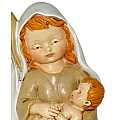 Il soprammobile natalizio, in resina colorata, rappresenta Giuseppe, Maria e Gesù Bambino in braccio alla Beata Vergine. Madre e padre fanno da sfondo e adorano il Bambino che poggia sulle ginocchia della santa madre. La Sacra Famiglia misura 16 cm d'altezza e 11 cm di larghezza. Lo stile dei personaggi di questa decorazione natalizia, caratterizzato da volti paffuti, ricorda un po' le raffigurazioni dei cartoni animati e rende la natività un regalo ideale per bambini o per alunni del catechismo. Dimensioni: 11 x 16 x 7 cm