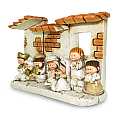 Presepe per bambini con capanna e 10 personaggi in resina - 14,5 x 10 cm
