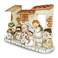 Presepe per bambini con capanna e 10 personaggi in resina - 23 x 15 cm