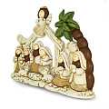 Presepe per bambini con capanna e 9 personaggi in resina - 21,5 x 15 cm