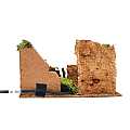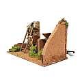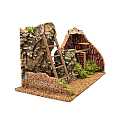 Accessori per presepe: Muro ad angolo con fuoco. Dimensioni: 10 x 19 x 15 cm. Materiali: legno, sughero e muschio. Alimentazione elettrica 220 V. Realizzato artigianalmente in Italia.