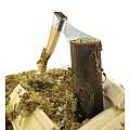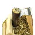 Accessori per presepe/Attrezzo da lavoro: Angolo boscaiolo con accetta. Dimensioni: 11 x 4 x 6 cm. Realizzato artigianalmente in Italia.
