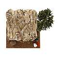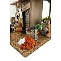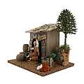 Accessori per presepe: Cantina con bevitore ubriaco. Dimensioni: 19 x 15 x 16 cm. Materiali: plastica, legno, sughero e muschio. Realizzato artigianalmente in Italia.