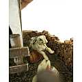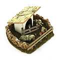 Accessori per presepe: Conigliera. Dimensioni: 13 x 16 x 7 cm. Materiali: Legno, sughero e muschio (tranne i conigli realizzati in plastica). Prodotto artigianalmente in Italia.