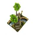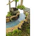 Accessori per presepe: Curva di fiume con ponte e alberi. Materiali: Legno, sughero, muschio e lichene. Realizzato artigianalmente in Italia.