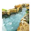 Accessori per presepe: Laghetto luminoso. Dimensioni: 5 x 16 x 7 cm. Materiali: legno, sughero, cartone, lichene e muschio. Altre caratteristiche: LED bianco ghiaccio con alimentazione a batteria. Realizzato artigianalmente in Italia.
