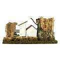 Accessori per presepe: paese sul fiume. Dimensioni: 26 x 18 x 11 cm. Materiali: legno, sughero e muschio (tranne le cassette realizzate in cartone). Realizzato artigianalmente in Italia.