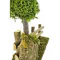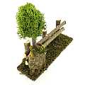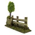 Accessori per presepe: Staccionata con albero. Dimensioni: 16 x 16 x 5 cm. Materiali: Legno, sughero, muschio e lichene. Realizzato artigianalmente in Italia.