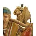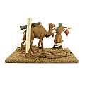 Accessori per presepe: Pellegrino con cammello. Dimensioni: 15 x 17 x 18 cm. La statuina del pellegrino è in plastica ed è alta 10 cm. Materiali: Legno e segatura. Realizzato artigianalmente in Italia.