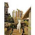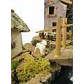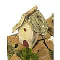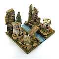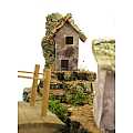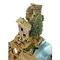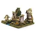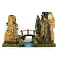 Accessori per presepe: Tratto di fiume tra le case con ponte. Dimensioni: 21 x 25 x 17 cm. Materiali: Legno, sughero e muschio. Realizzato artigianalmente in Italia.