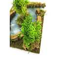 Accessori per presepe: Tratto di fiume con isolotto alberato. Dimensioni: 26 x 18 x 11 cm. Materiali: Legno, sughero, muschio e lichene. Realizzato artigianalmente in Italia.
