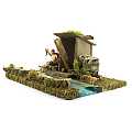 Tratto di Fiume con Pescatore e Baracca per Presepe, Tratto per Ruscello Componibile con Statuina del Pescatore, Linea Natale Bertoni, Legno, Multicolore, 26 x 18 x 11 Cm