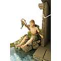 Accessori per presepe: Tratto di fiume con casa del pescatore. Dimensioni: 26 x 18 x 11 cm. La statuina del pescatore è in plastica ed è alta 10 cm. Il tratto di fiume è combinabile con altri pezzi per creare un fiume modulare, della forma e della lunghezza desiderata. Materiali: Legno, sughero e muschio. Realizzato artigianalmente in Italia.Questa sezione di fiume con pescatole e casetta per la pesca è un pezzo perfetto per il fiume componibile del vostro presepe, da arricchire di volta in volta con nuovi tratti. Il tratto di fiume è ricco di dettagli: il bordo del corso del fiume è realizzato con sughero e muschio, mentre il letto del fiume vero e proprio è sapientemente dipinto di azzurro e "protetto" da uno strato di plastica che crea anche un effetto tridimensionale del corso del fiume, nel quale non va inserita né acqua e né altro liquido. Sbizzarritevi con la fantasia nel ricreare il corso di fiume più elaborato possibile aggiungendo anche altri tratti di fiume della medesima linea: esistono curve di fiume, tratti di fiume illuminati con lucine led, sezioni con ponticelli o moli, cascate (da usare come parte iniziali del corso del fiume) e laghetti o stagni (da impiegare come parte finale del corso del fiume). Senza usare alcun tipo di liquido, questi tratti di fiume vi permetteranno di dare un tocco di colore al vostro presepe in modo facile, veloce e divertente. Quando vi annoierete del corso del fiume creato, potrete rinnovare il vostro presepe mischiando i vari pezzi a piacimento per creare una nuova ambientazione in pochi minuti e in modo molto semplice!