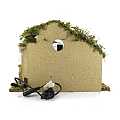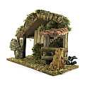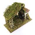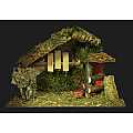 Capanna con luce effetto fuoco, ideale per statuine da 10 cm. Alimentazione elettrica 220 V. Altre caratteristiche: Tettoia con tegole in terracotta. Dimensioni: 36 x 15 x 24 cm. Materiali: Legno, Sughero, Paglia e Muschio. Realizzato artigianalmente in Italia.